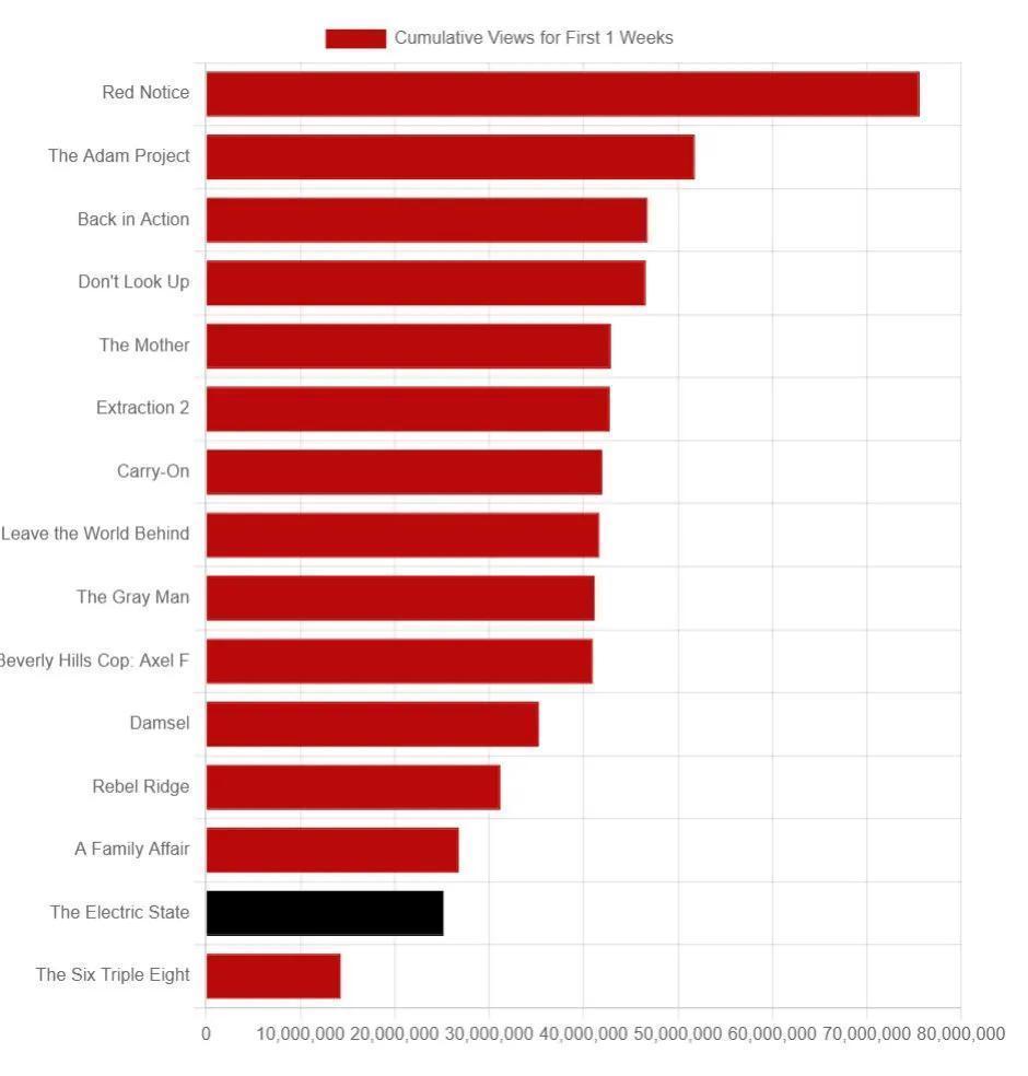 如果跟Netflix其他成功的原创电影相比,《电幻国度》的表现就更显得黯淡无光了。