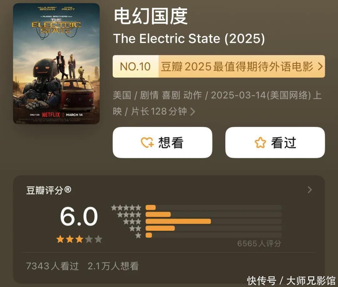 Netflix上映的科幻大片《电幻国度》(The Electric State)遭遇票房滑铁卢。